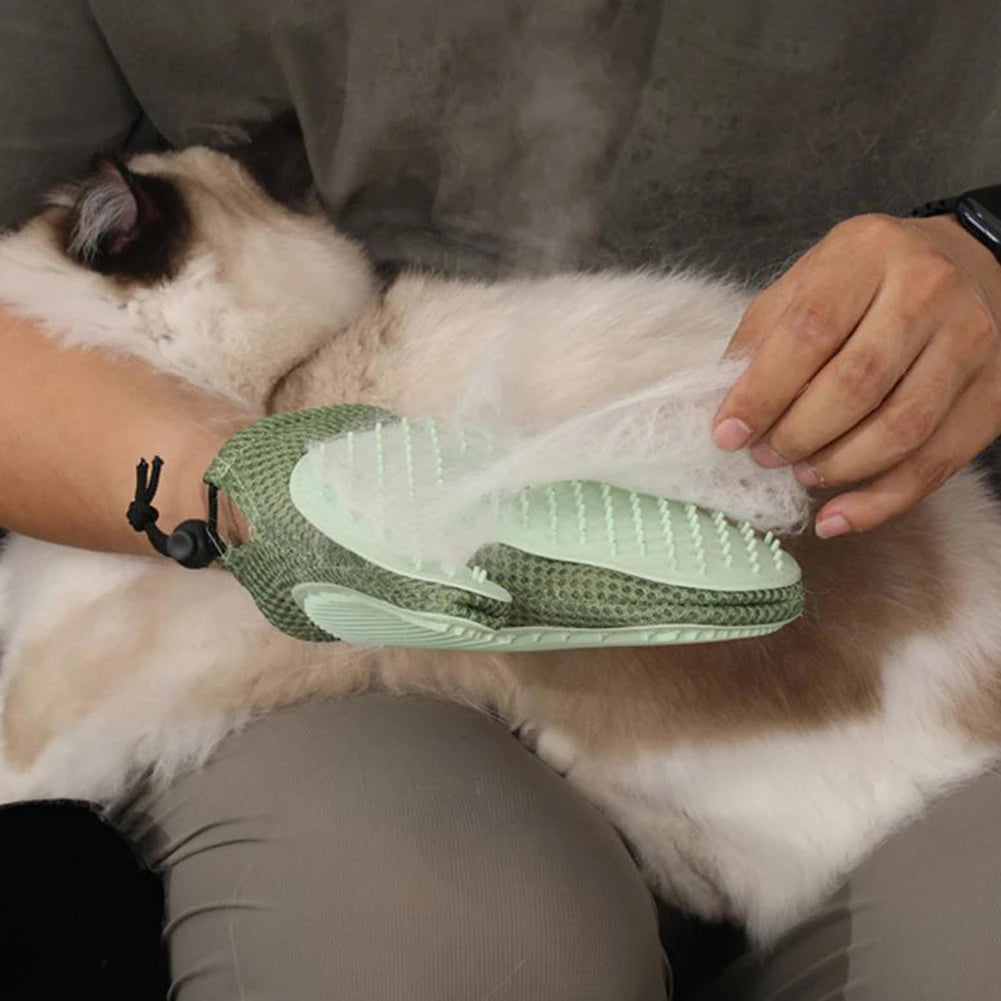Upgrade your pet care routine with this multifunctional grooming glove that combs, massages, removes loose fur, and even sprays water or grooming solution.
